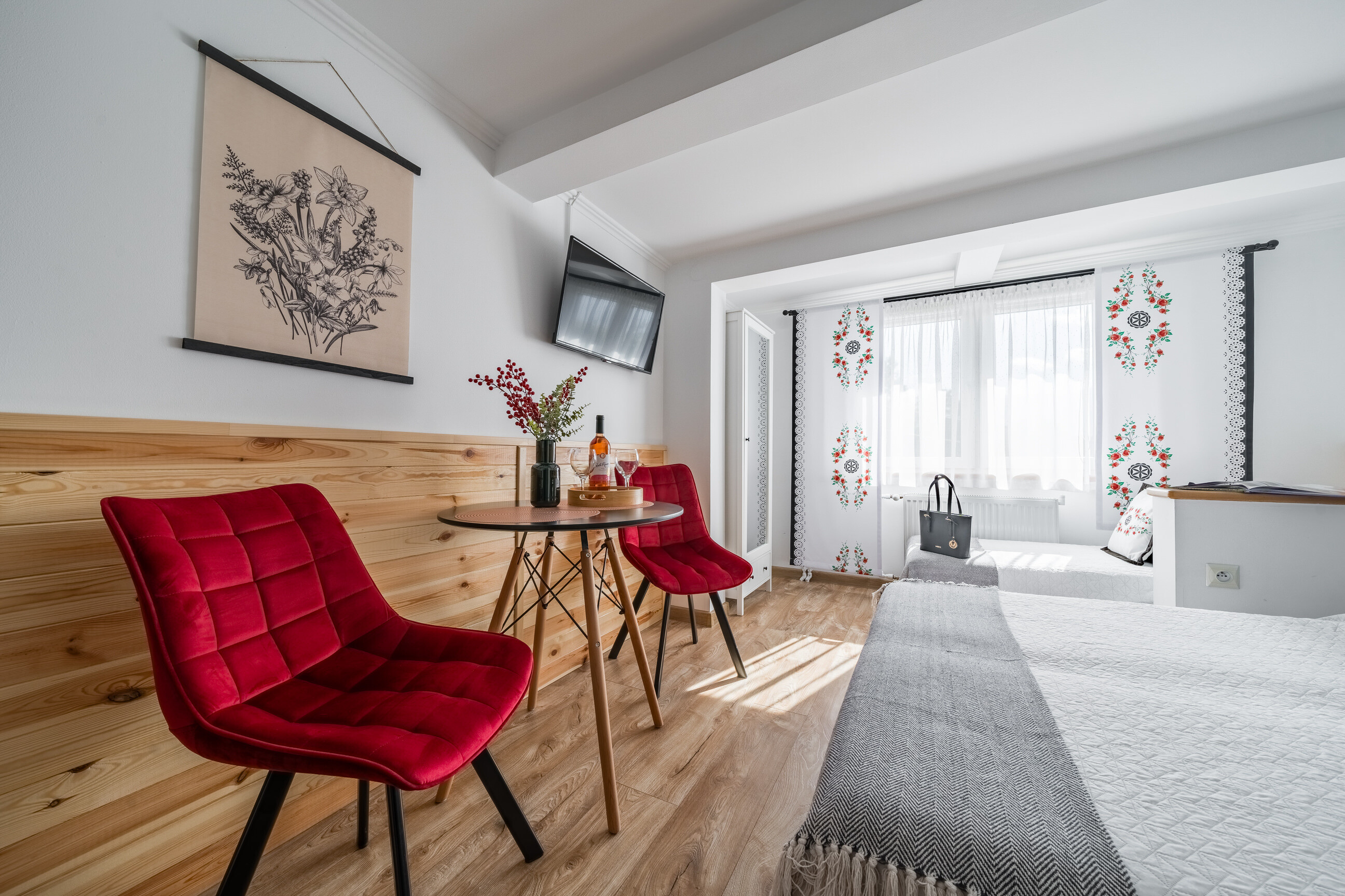 Nasze pokoje i apartamenty urządziliśmy z dbałością o detale, nawiązując do tradycyjnej góralskiej stylistyki.